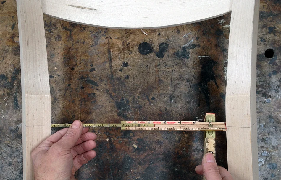 Here I am using a folding extension rule to check the distance between the legs at the seat rung.