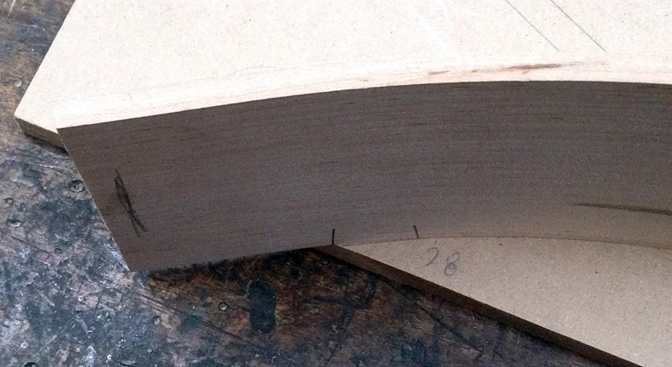 If you look carefully you’ll see that the angle of the slat blank matches the 28° angled line very closely.