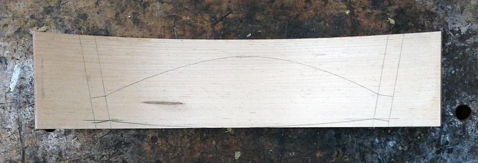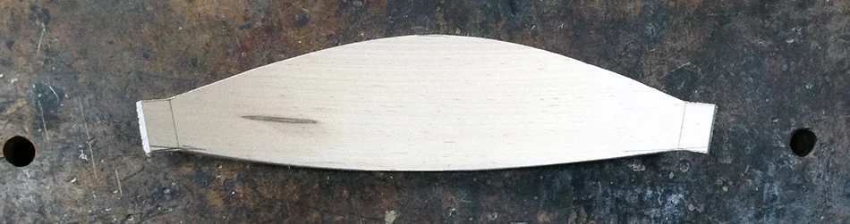 After checking the angle of the blank I use the measuring jig to transfer the tenon shoulders to the blank and layout the shape of the slat as described here.